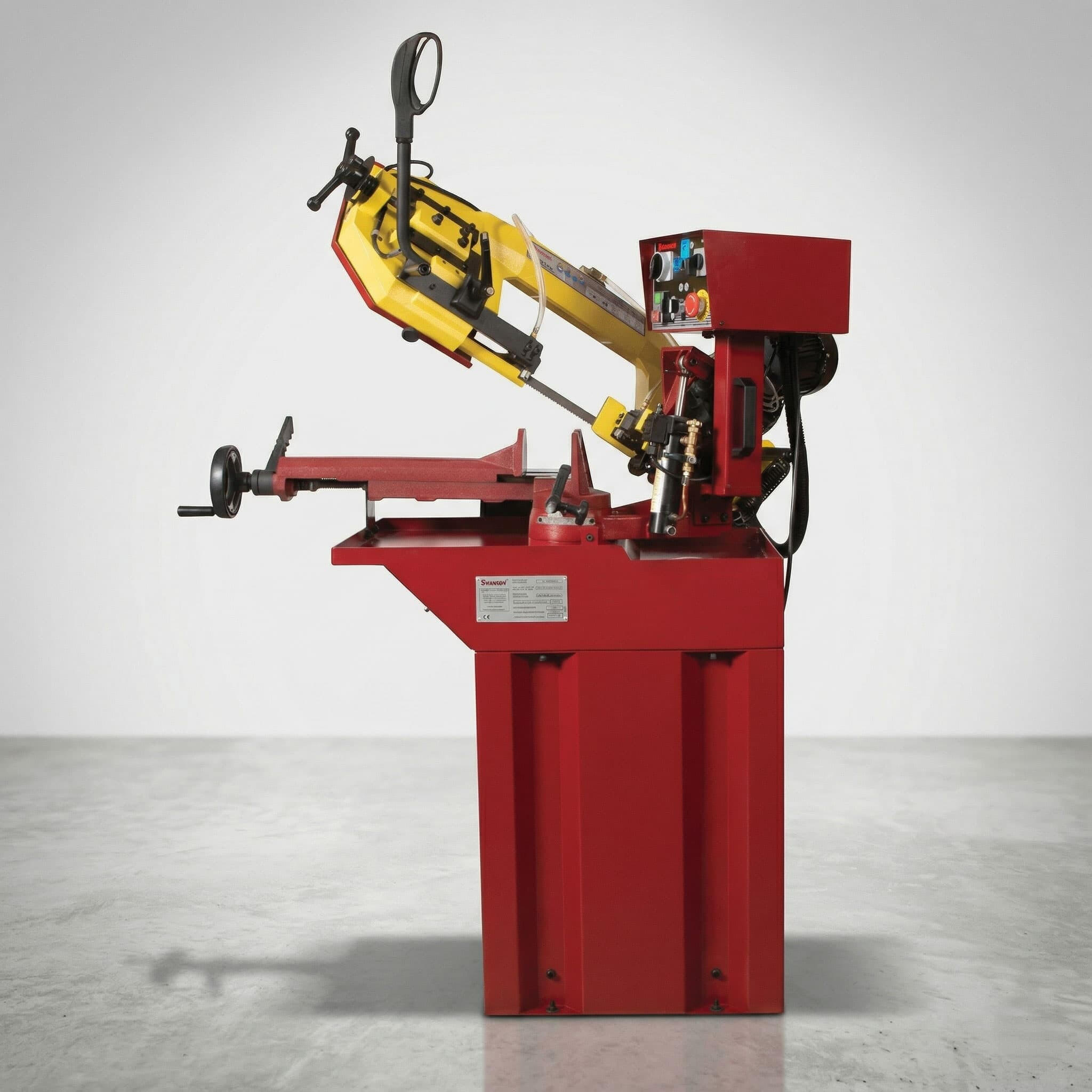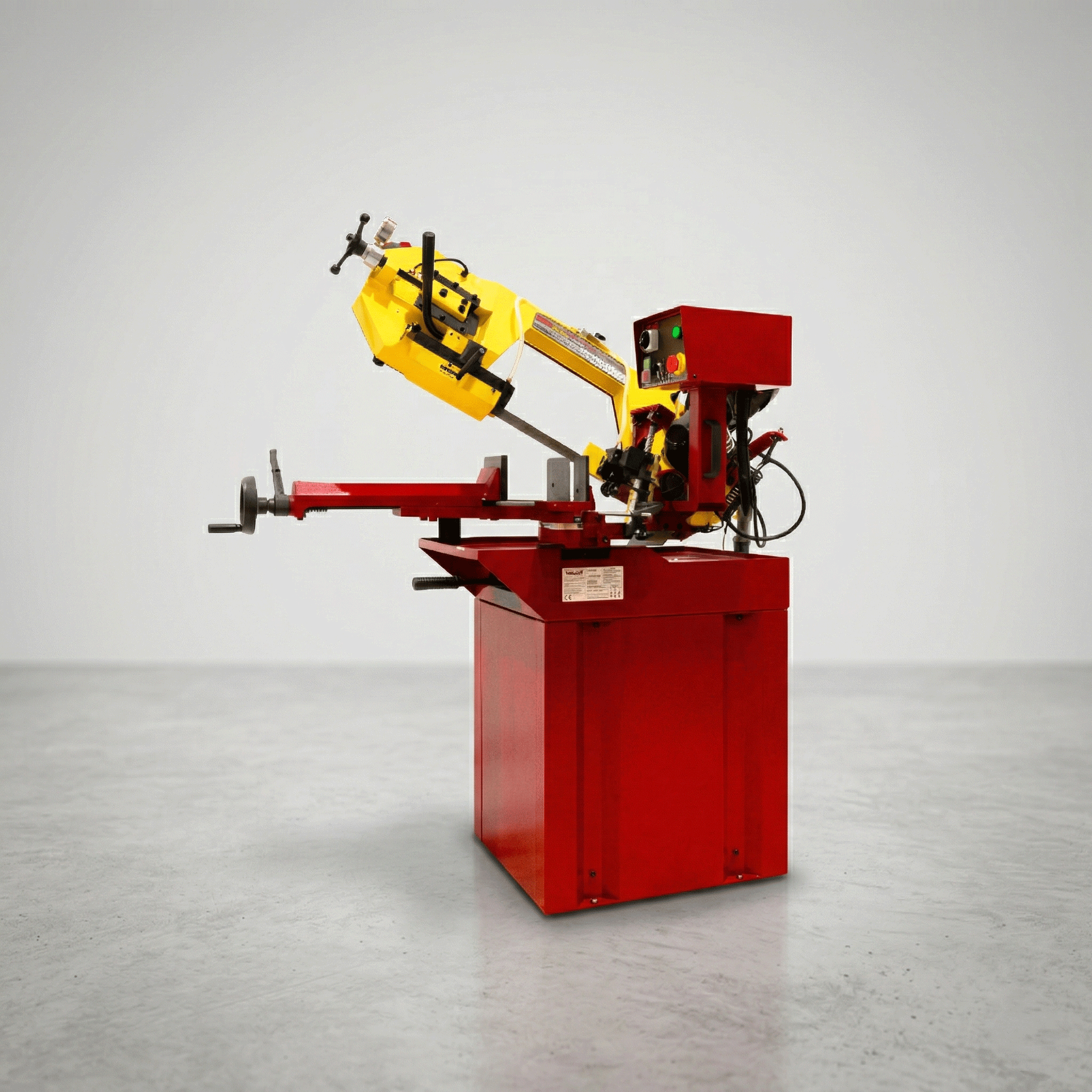 Stacjonarna pozioma przecinarka taśmowa do małych i średnich warsztatów, do cięcia materiałów pełnych i profili.
